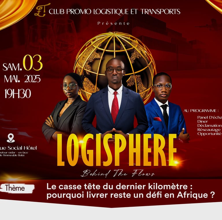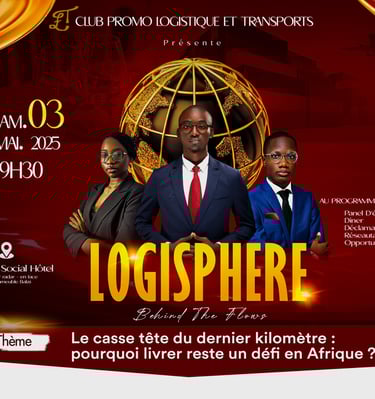 La sphère stylisée évoque la terre, symbole d’ouverture internationale, tandis que les courbes dynamiques traduisent le mouvement, la croissance et la fluidité des échanges, essentiels dans le domaine du transit et de la logistique.