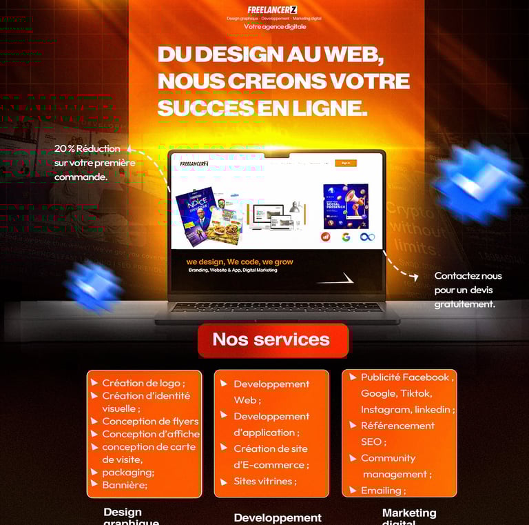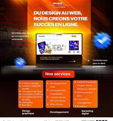 Nous créons des visuels uniques et percutants pour donner vie à votre marque. Logos, chartes graphiques, affiches, flyers, cartes de visite, bannières ou contenus pour vos réseaux sociaux : chaque design est pensé pour séduire, inspirer et rester mémorable.