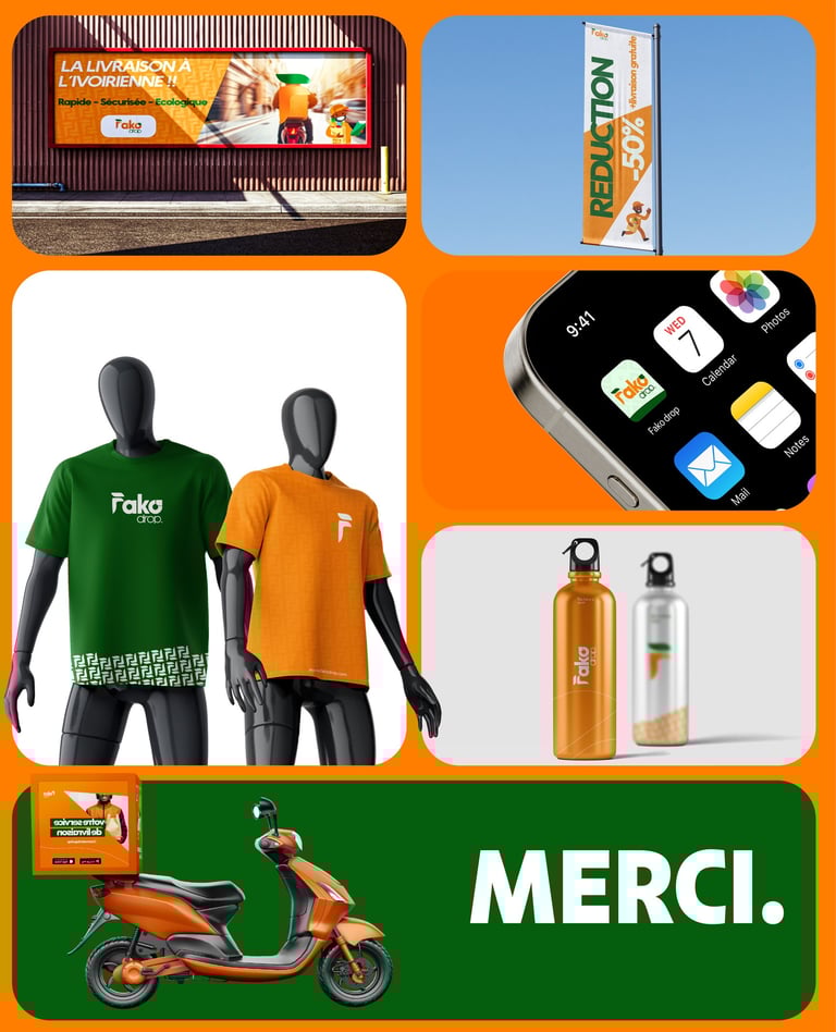 Ce projet est une proposition fictive de refonte de son identité visuelle, afin de traduire ses valeurs : livraison à l’ivoirienne, soutien aux champions locaux et engagement écologique.